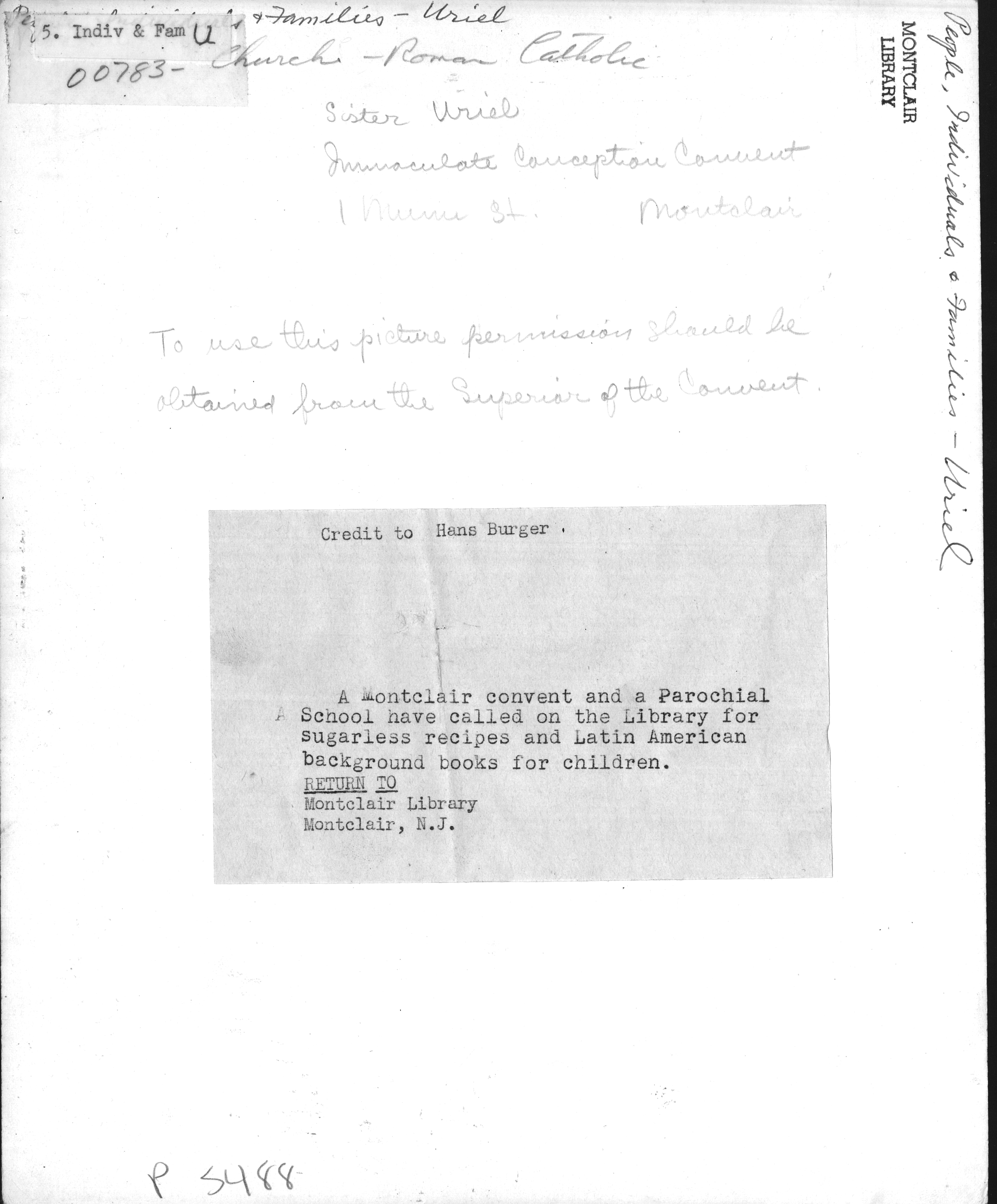 p5488 People portrait Sister Uriel Nuns Churches Roman Catholic Church of Immaculate Conception Convent Photo by Hans Burger