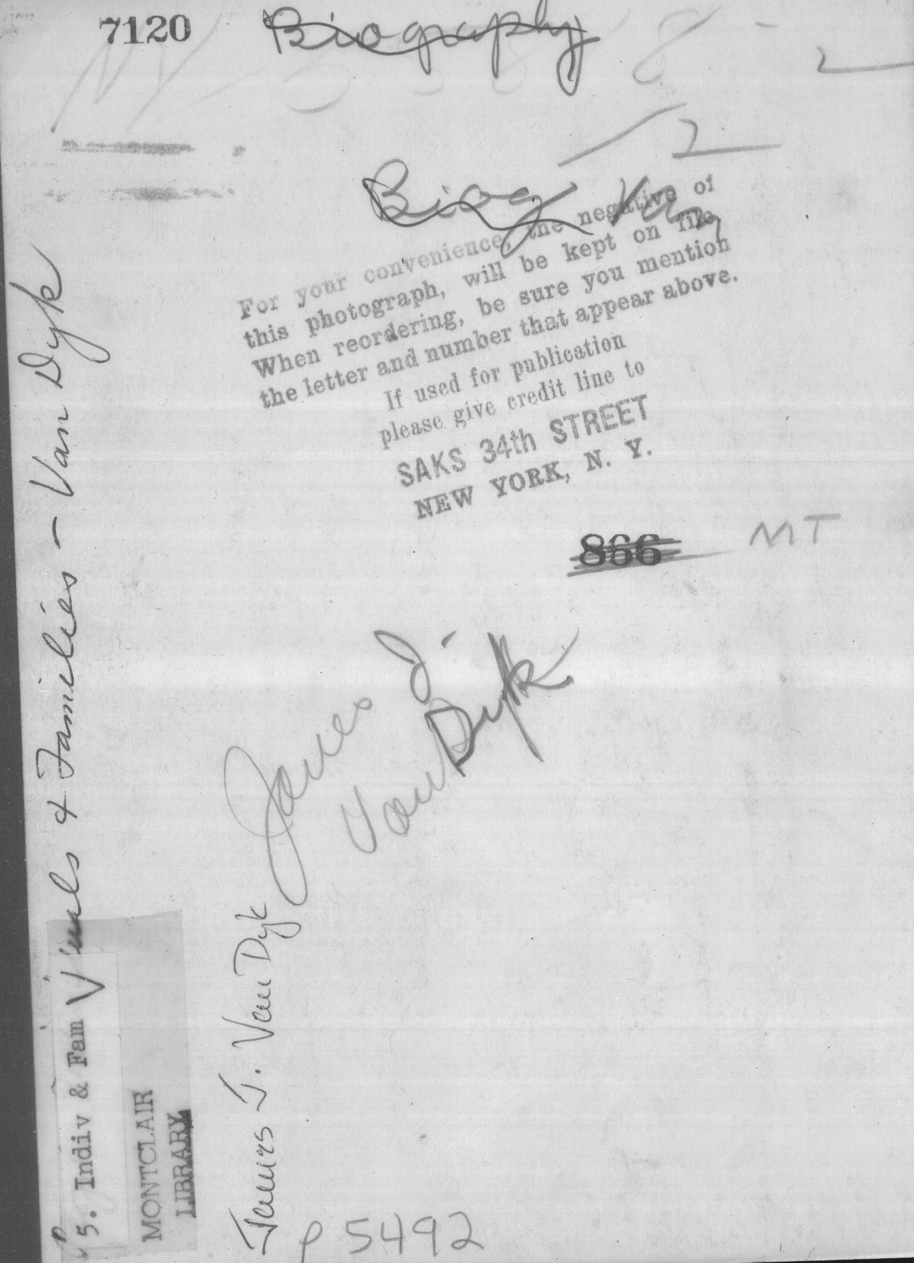p5492 People portrait James Van Dyke Actors Photo by Saks 34th Street