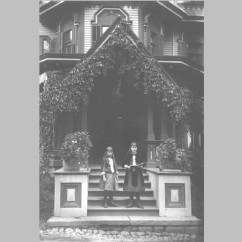p5631 People Children group portrait Florence Young Helen Young Businesses Boarding Houses Mrs. Conradt's (Larches) 24 North Mountain Avenue ca. 1885