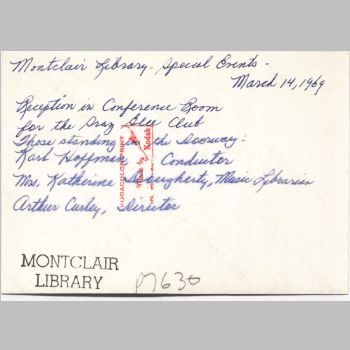 p7630 Buildings & Institutions Libraries Montclair Public Library Fourth Building 50 South Fullerton Avenue Interiors Libaries Events Library Reception for Graz Glee Club March 14, 1969
