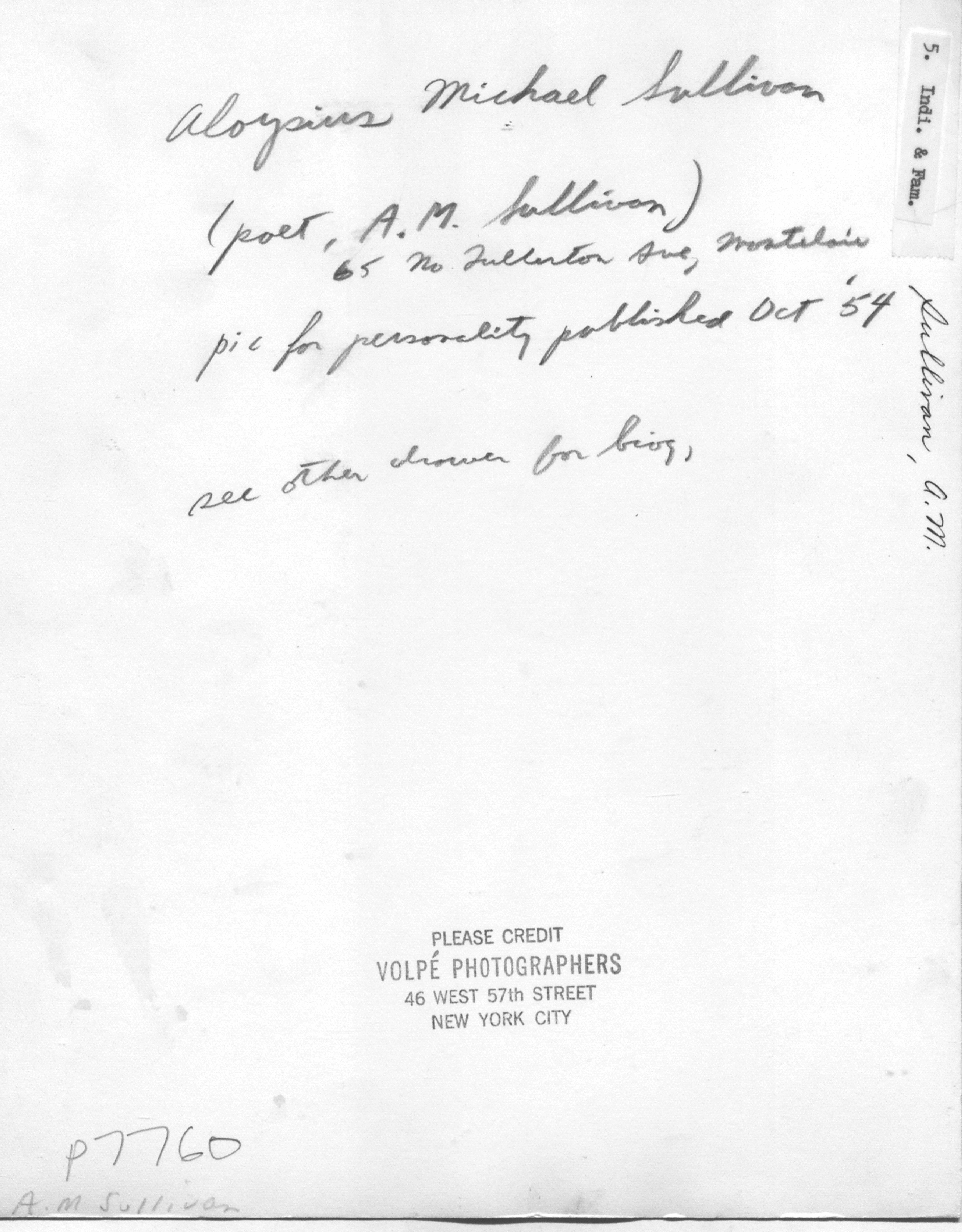 p7760 People Notable portrait Aloysius Michael Sullivan Poets Screenwriters Photo by Volpe Photographers