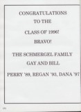 CONGRATULATIONS TO THE CLASS OF 1996! BRAVO! THE SCHMERGEL FAMILY GAY AND BILL PERRY ’89, REGAN ’93, DANA ’97 134