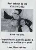 Best Wishes to the Class of 2012 Good Job Girls Congratulations Caroline, Caitlin & Kimberly on another great year! Love, Mom and Dad 137