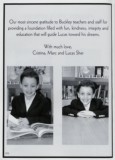 O u r most sincere gratitude to Buckley teachers and staff for providing a foundation filled with fun, kindness, integrity and education that w ill guide Lucas toward his dreams. W ith much love, Cristina, Marc and Lucas Sher 210