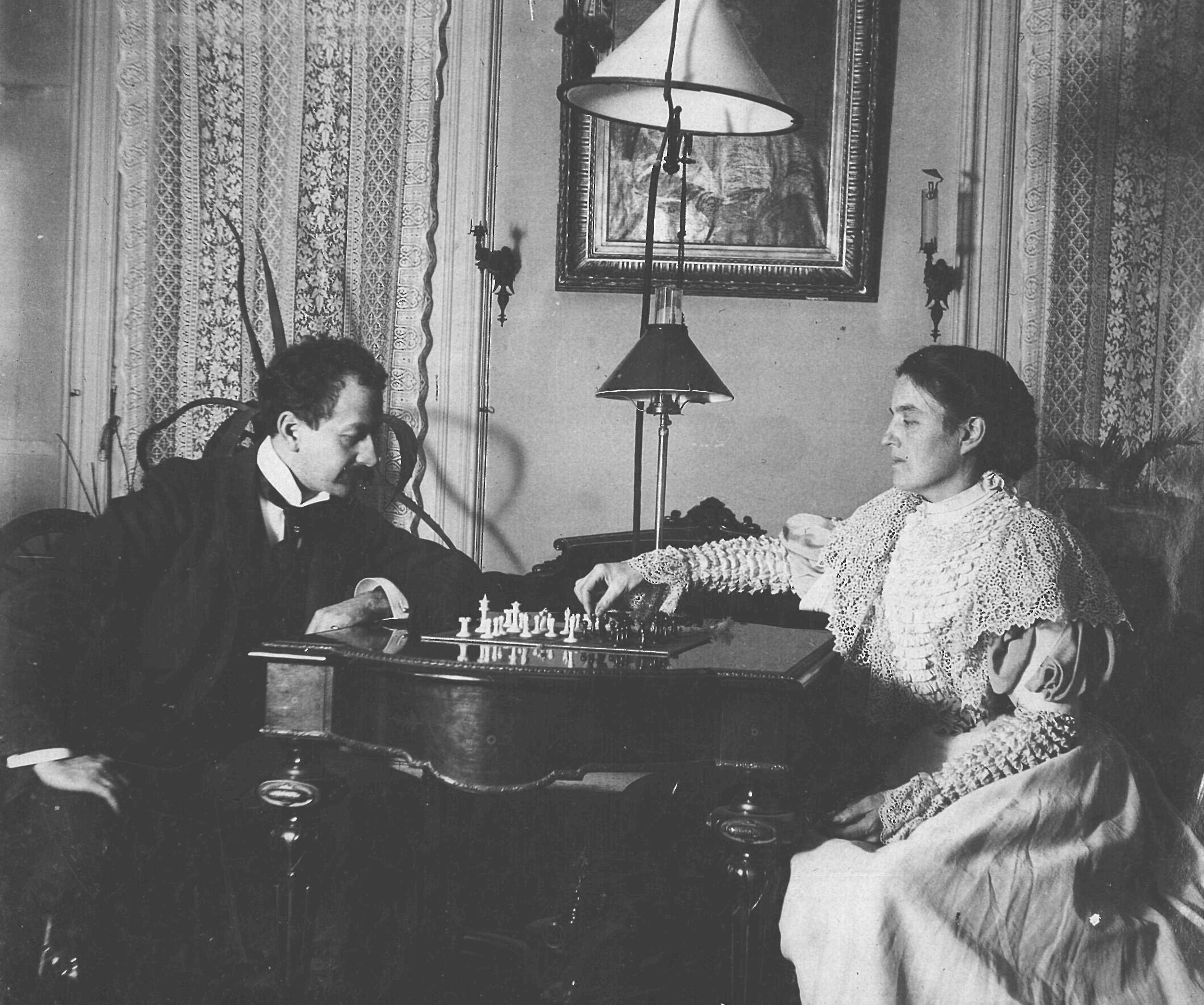 p5282 People group portrait Willis Sawyer and Jessie Sawyer Games Chess Interiors Parlors ca. 1898