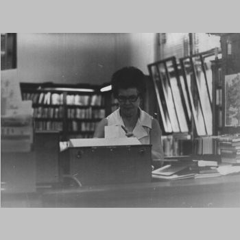 p7086 Buildings & Institutions Libraries Montclair Public Library Bellevue Avenue Branch Interiors Libraries People portrait Irene Negley ca. 1975