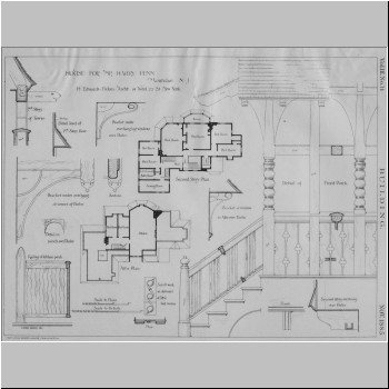 p9588 Buildings & Institutions Residences Street Scenes 208 North Mountain Avenue (originally 177 Upper Mountain Avenue) Harry Fenn's Residence Architectural Sketch M. Edwards Ficken Architects(From "Elegant Eighties" Vol 3)