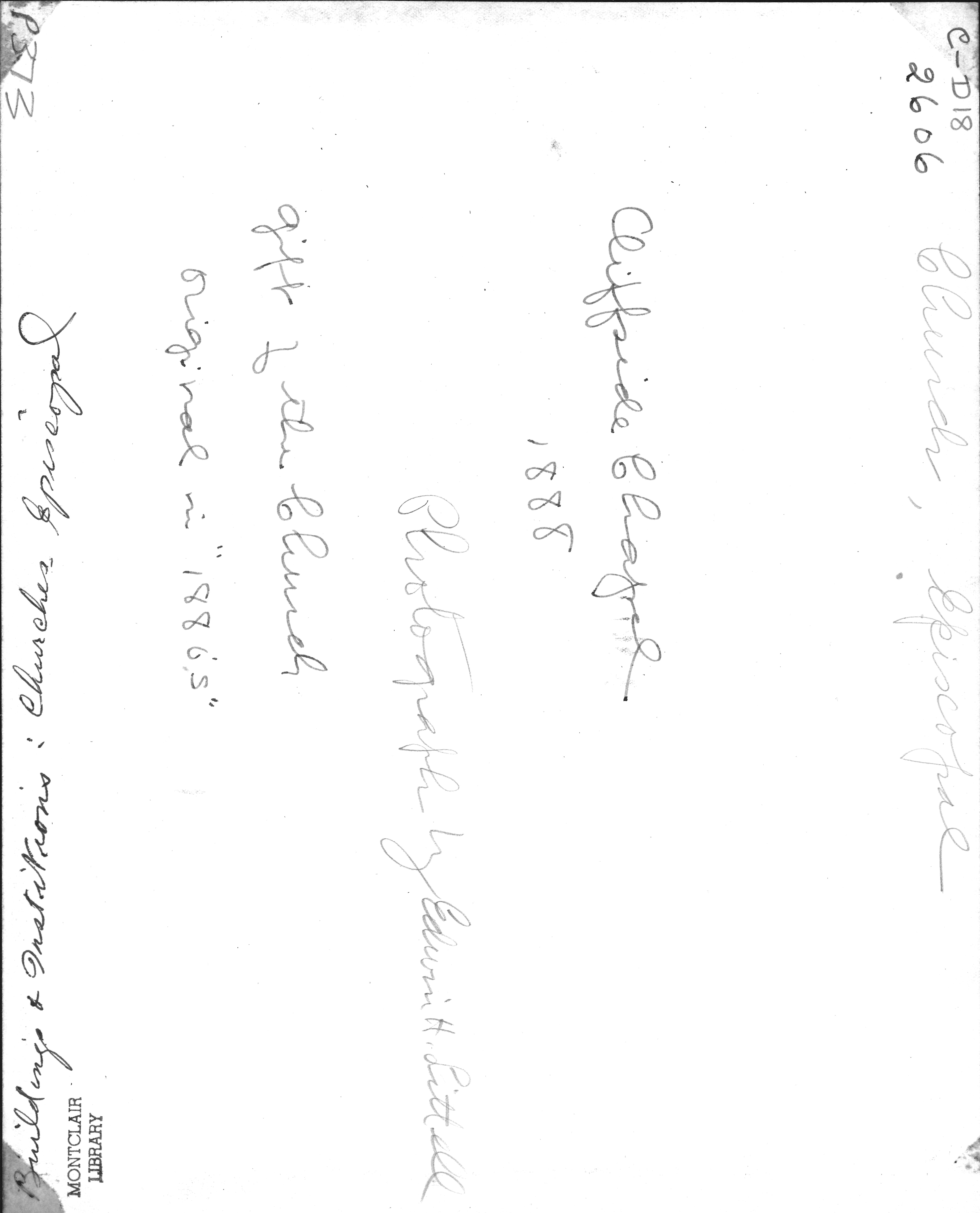 p373 Buildings & Institutions Churches Episcopal Cliffside Chapel 1888 Photo by Edwin Littell