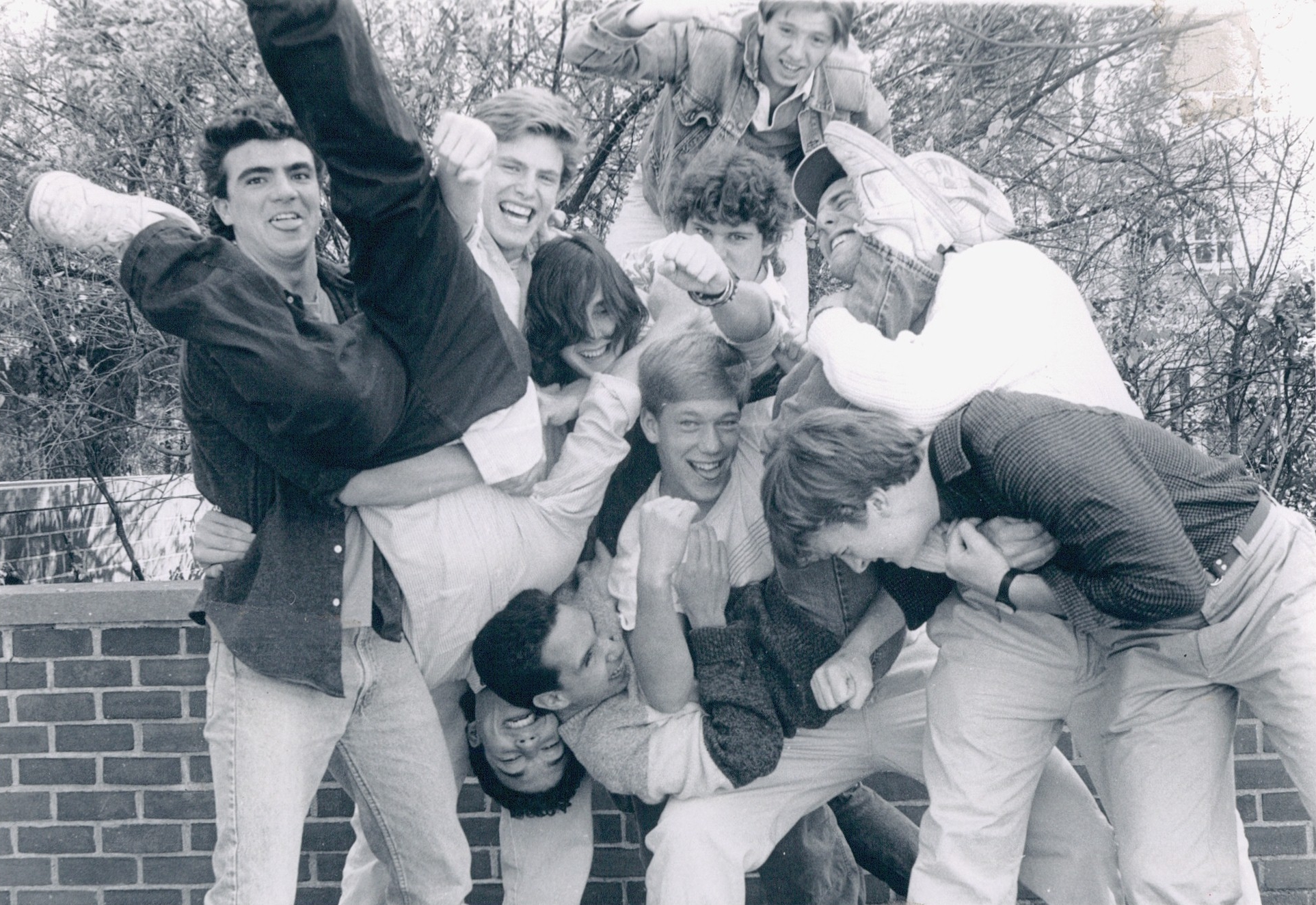 PDS 98 Athletes from one team cheer on another c. 1984.