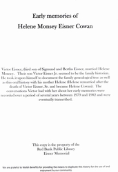 Eisner Family Notebook 1- Oral history, Helene Eisner Cowen