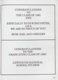CONGRATULATIONS TO THE CLASS OF 1995 AND ESPECIALLY TO OUR DAUGHTER, LILA WE ARE SO PROUD OF YOU! MOM, DAD, AND GREGORY CONGRATULATIONS TO THE GRADUATING CLASS OF 1995! LIFETOUCH NATIONAL SCHOOL STUDIOS