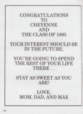 CONGRATULATIONS TO CHEYENNE AND THE CLASS OF 1995 YOUR INTEREST SHOULD BE IN THE FUTURE, YOU’RE GOING TO SPEND THE REST OF YOUR LIFE THERE ... STAY AS SWEET AS YOU ARE! LOVE, MOM, DAD, AND MAX 146