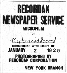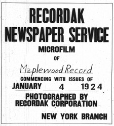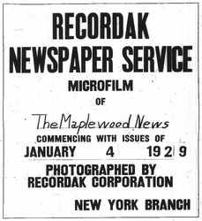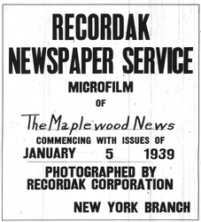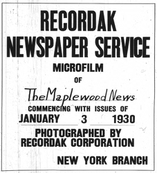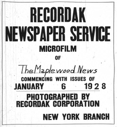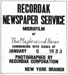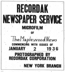 Digitization of the News-Record was made possible by a grant from the Maplewood Open Space Trust Fund for Historic Preservation, and a project grant from the New Jersey Historical Commission, a division of the Department of State.