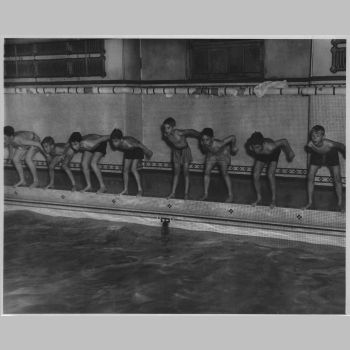 p755 Buildings & Institutions Clubs Sports Montclair Athletic Club Interiors Clubs People group portrait Sports Swimming Photo by Norman M. Germond