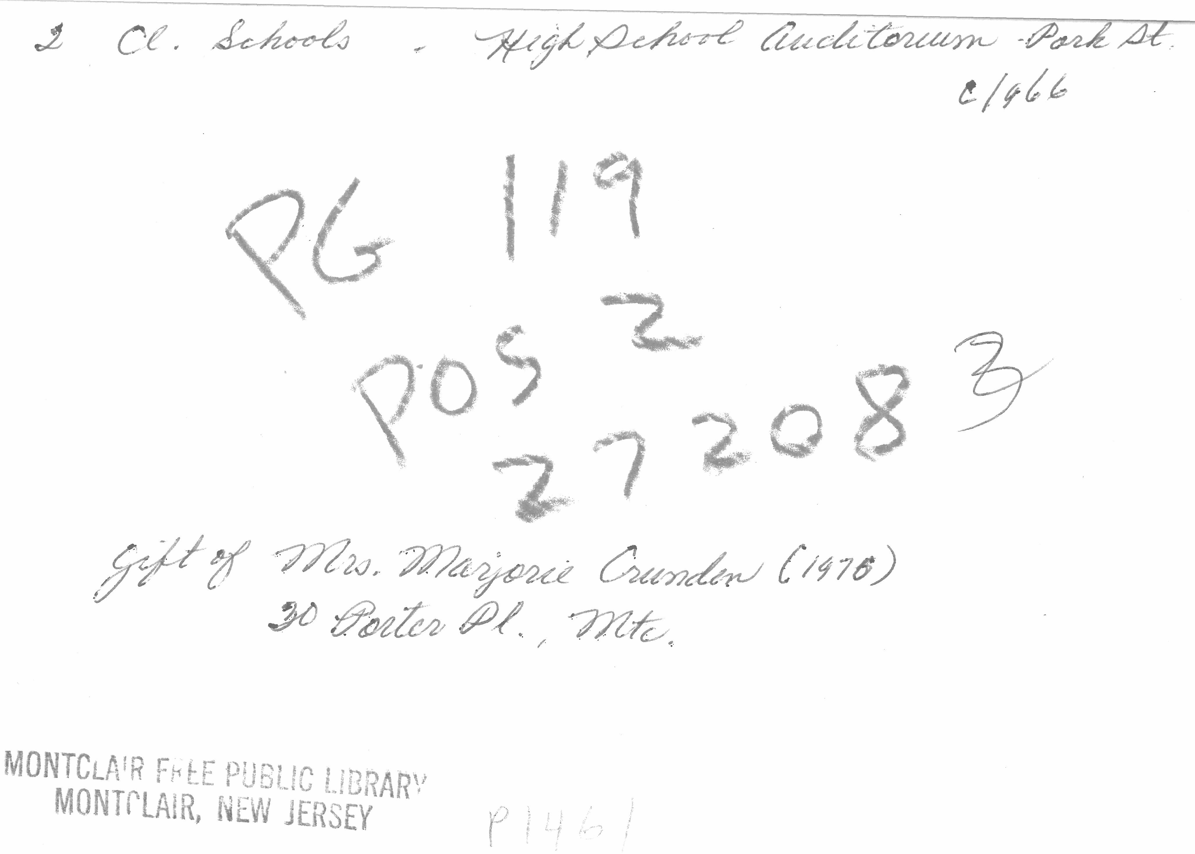 p1461 Buildings & Institutions Schools Public Secondary Montclair High School Auditorium Park Street ca. 1965