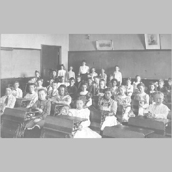 p1605 Buildings & Institutions Schools Public Elementary Mount Hebron School Interiors Schools People class portrait Sixth Grade May 12, 1903 Photo by W. J. Bourie