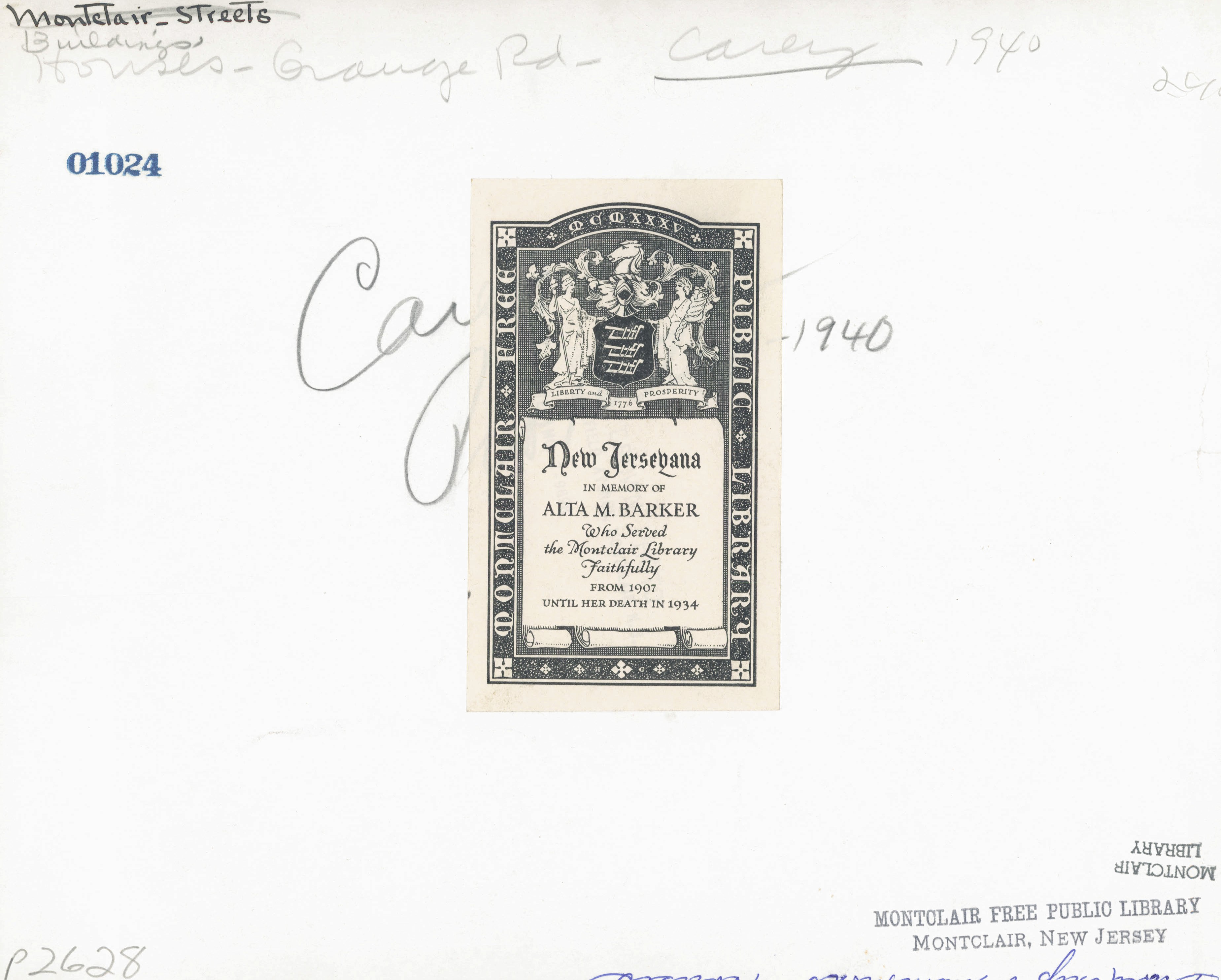 p2628 Buildings & Institutions Residences Street Scenes 240 Orange Road and Llewellyn Road and Elm Street Stephen Carey's Residence (originally William B. Holmes' Residence) ca. 1940 Photo by Frank F. Brown