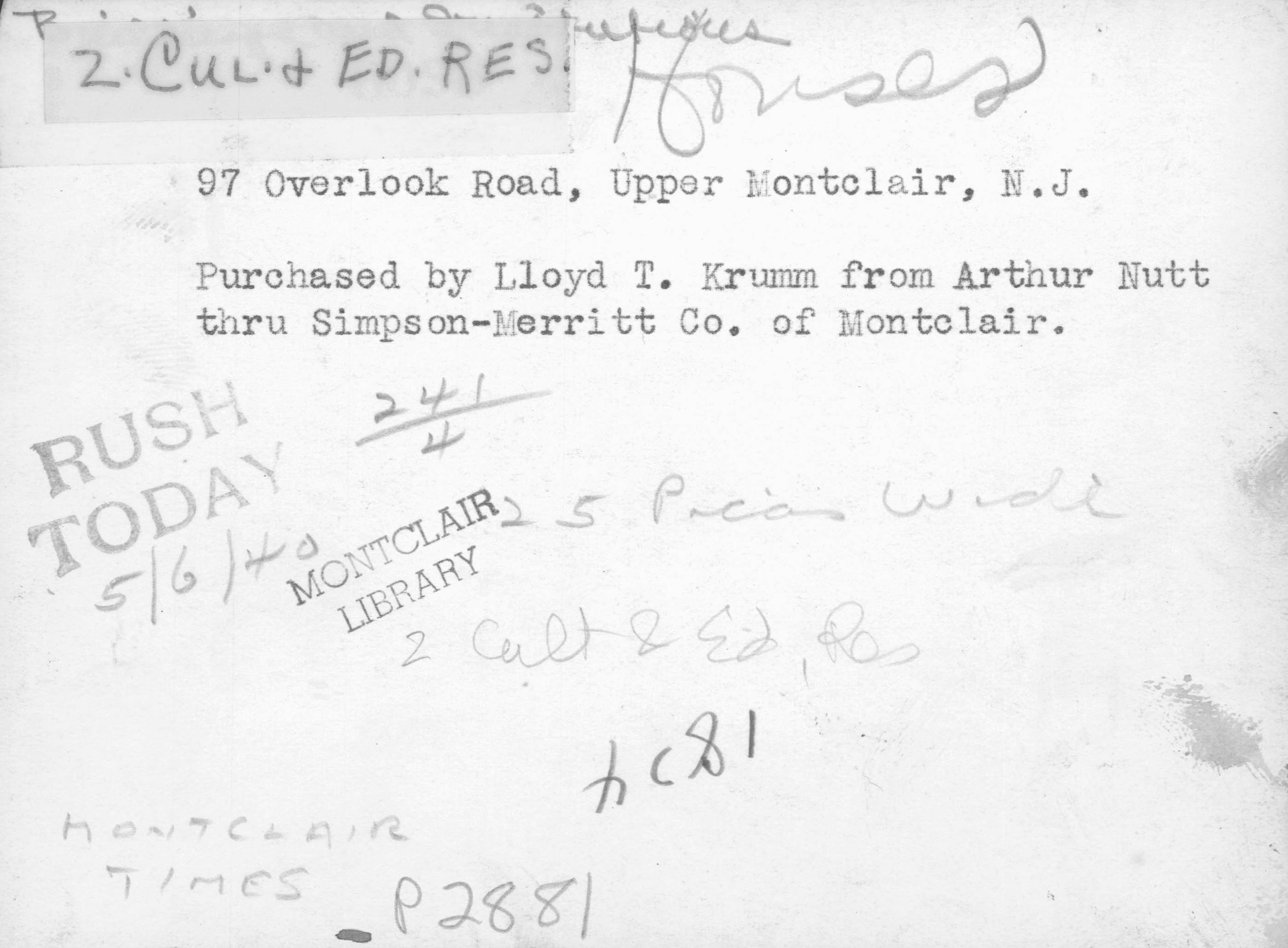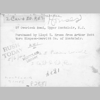 p2881 Buildings & Institutions Residences Street Scenes 97 Overlook Road Arthur Nutt's Residence (later Lloyd T. Krumm's Residence) Upper Montclair