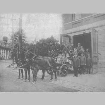 p3203 Government Municipal Fire Departments Montclair Hose Company No. 1 Bloomfield Avenue People group portrait Transportation Horse Drawn Fire Apparatus Photo by A. S. Landis