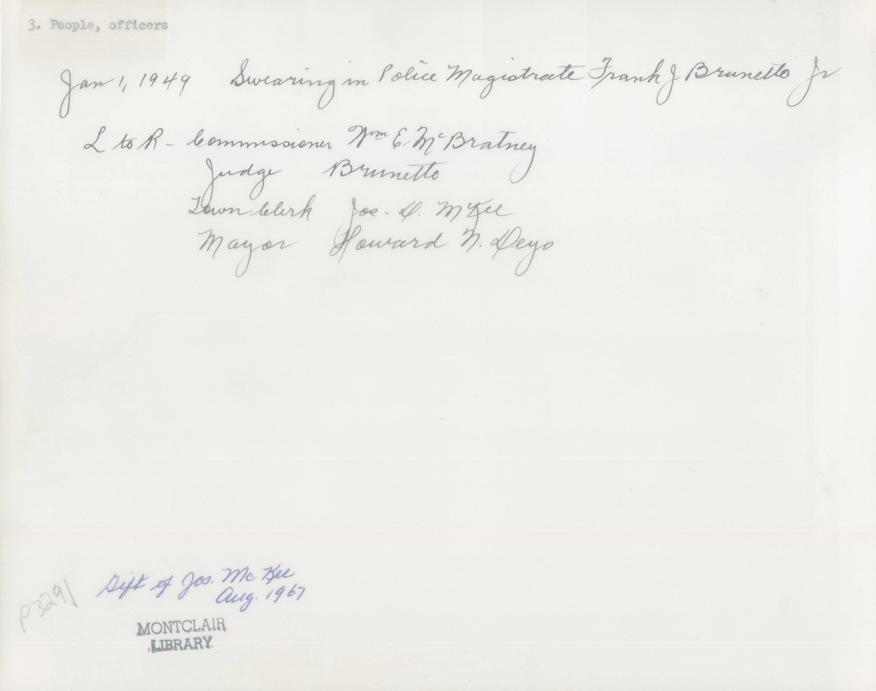 p3291 Government Municipal Montclair Police Department People group portrait Swearing in Police Magistrate Frank J. Brunetto Jr. January 1, 1949
