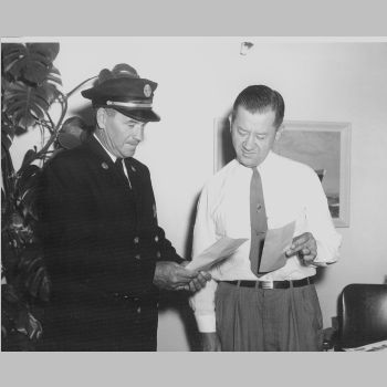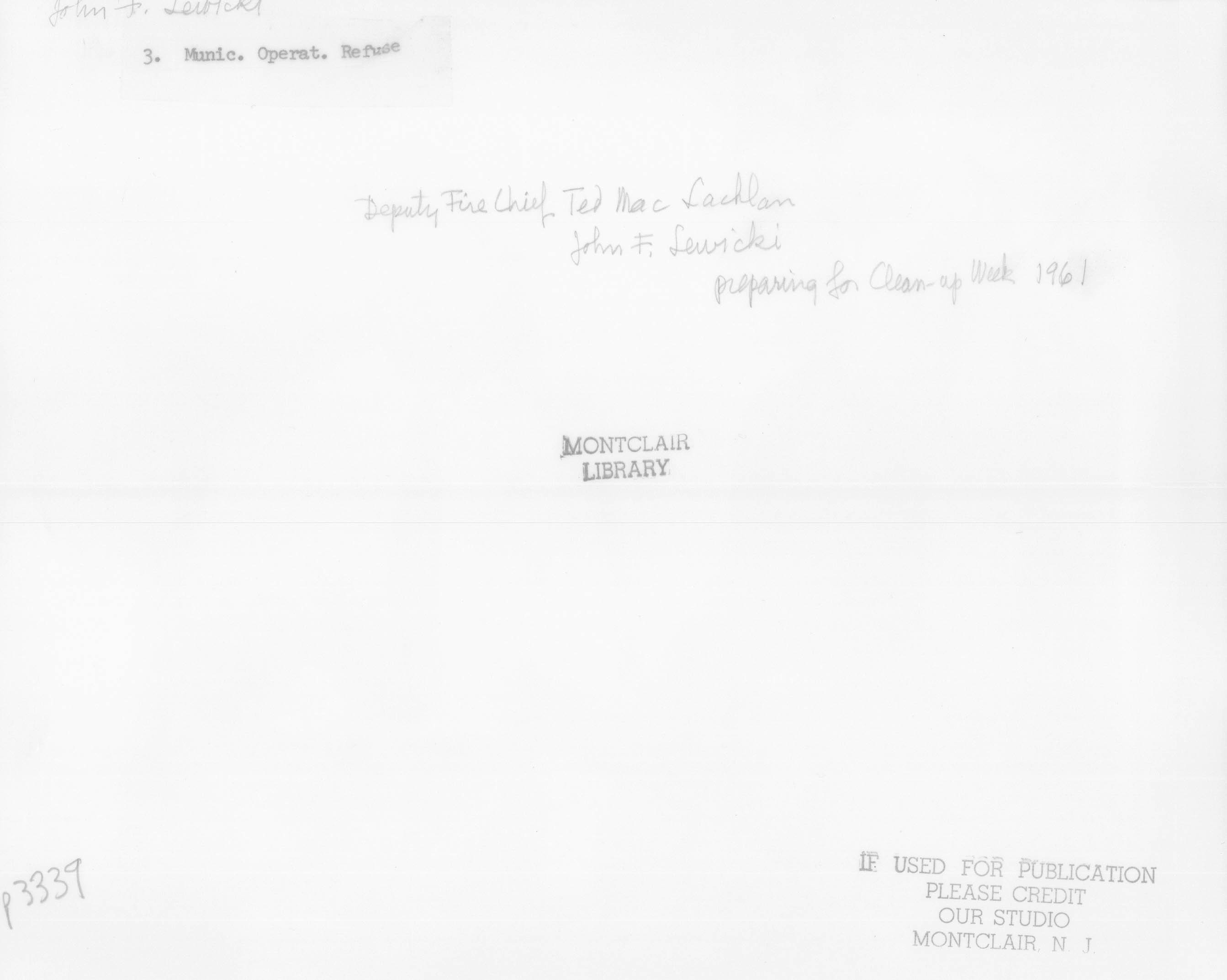 p3339 Government Municipal Department of Public Works People group portrait Deputy Fire Chief Ted MacLachlan and John Lewicki Keep Montclair Beautiful Committee Montclair Fire Department Fall Clean Up and Fire Prevention Week Fall 1961 Photo by Our Studio
