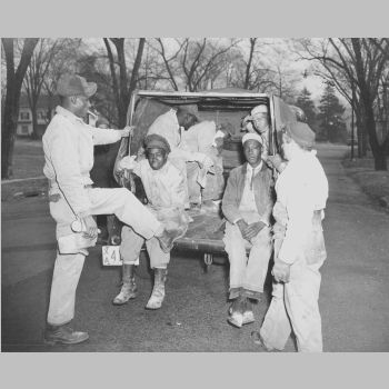 p3345 Buildings & Institutions Government Municipal Department of Public Works group portrait Refuse Collection Transportation Garbage Truck