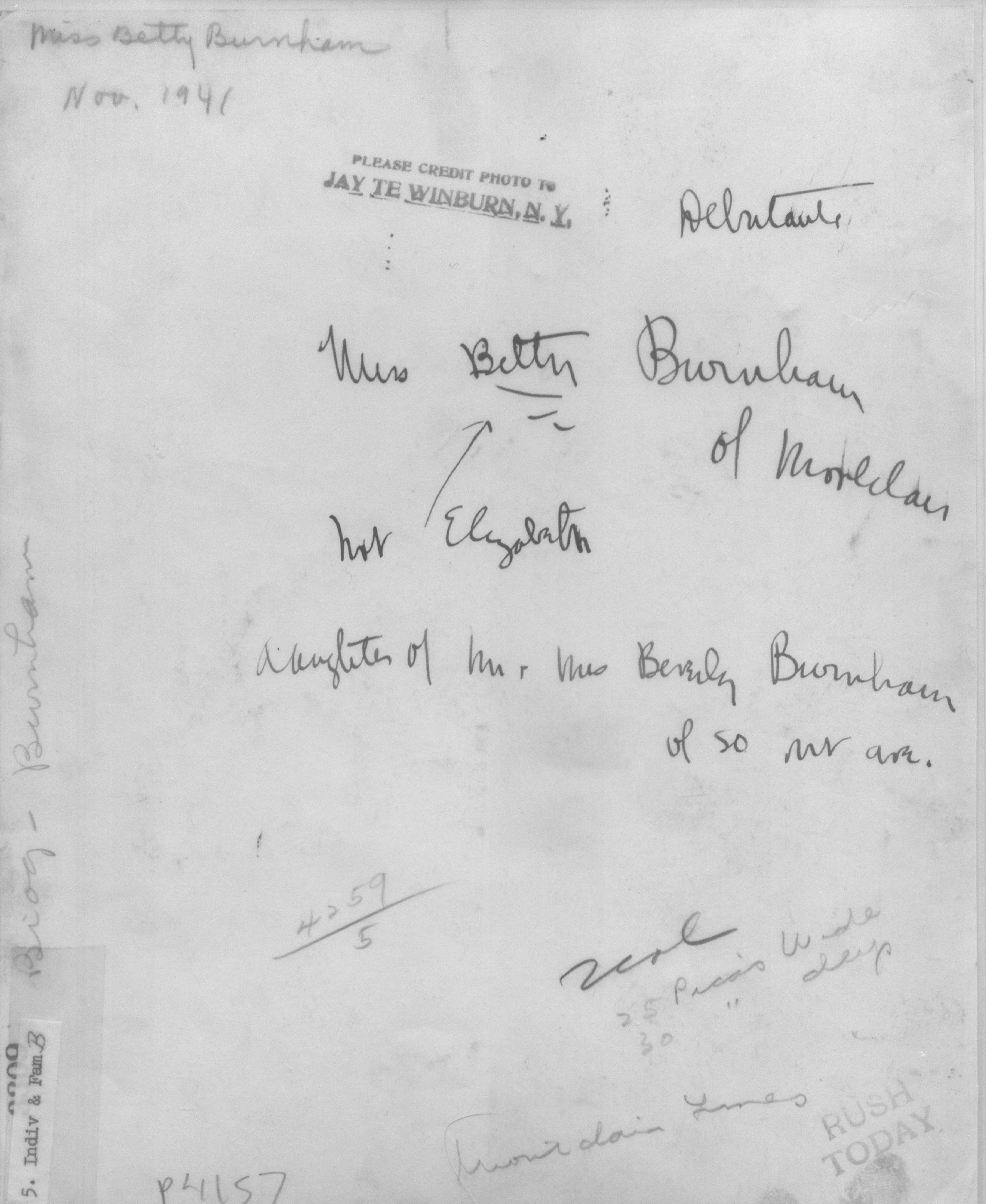 p4157 People portrait Betty Burnham November 1941 Photo by Jay Te Winburn
