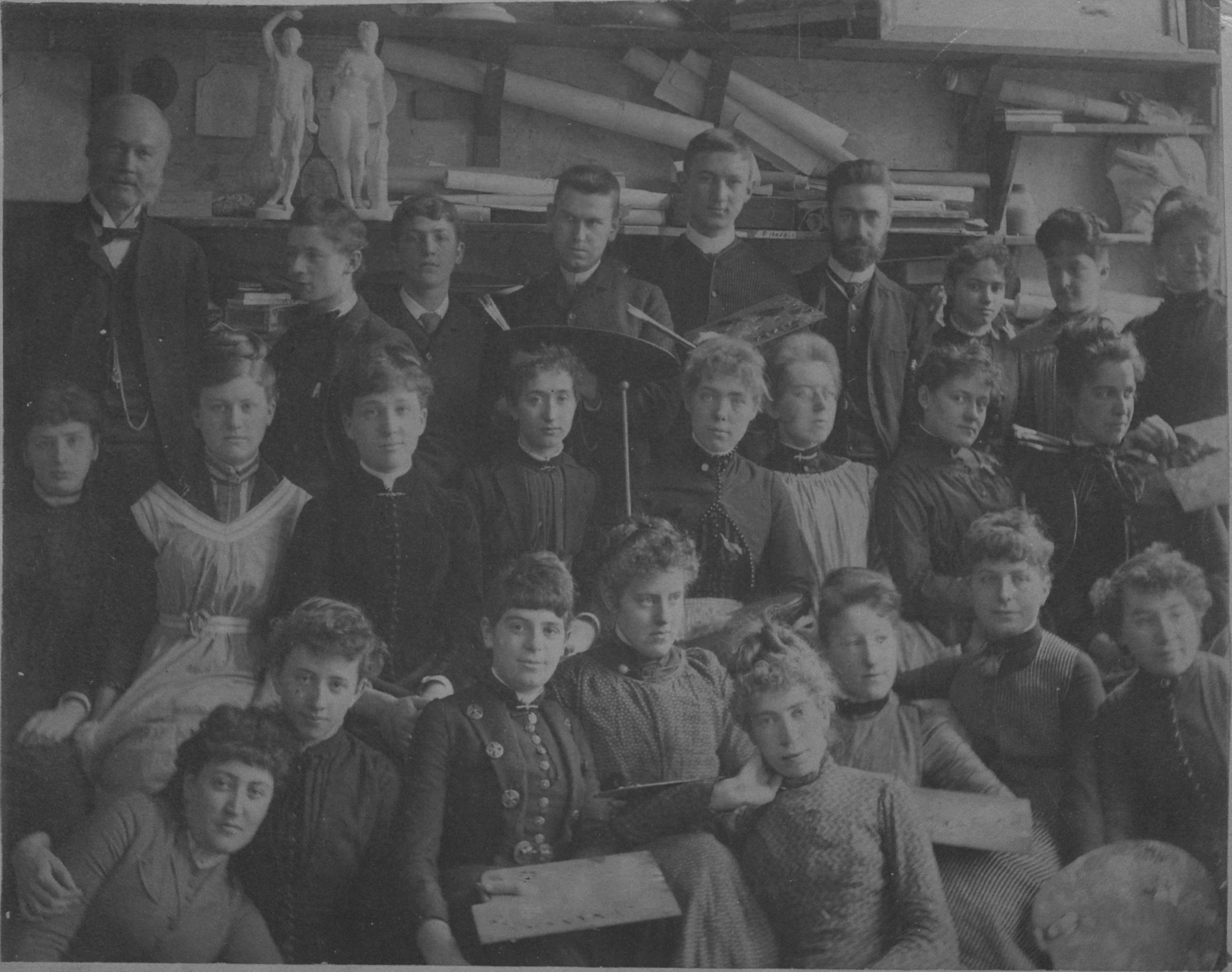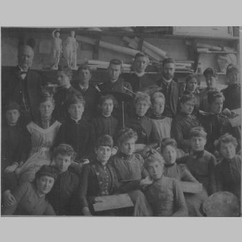 p4227 People group portrait Alfred Crane (with dark beard) Interiors Schools Art Class