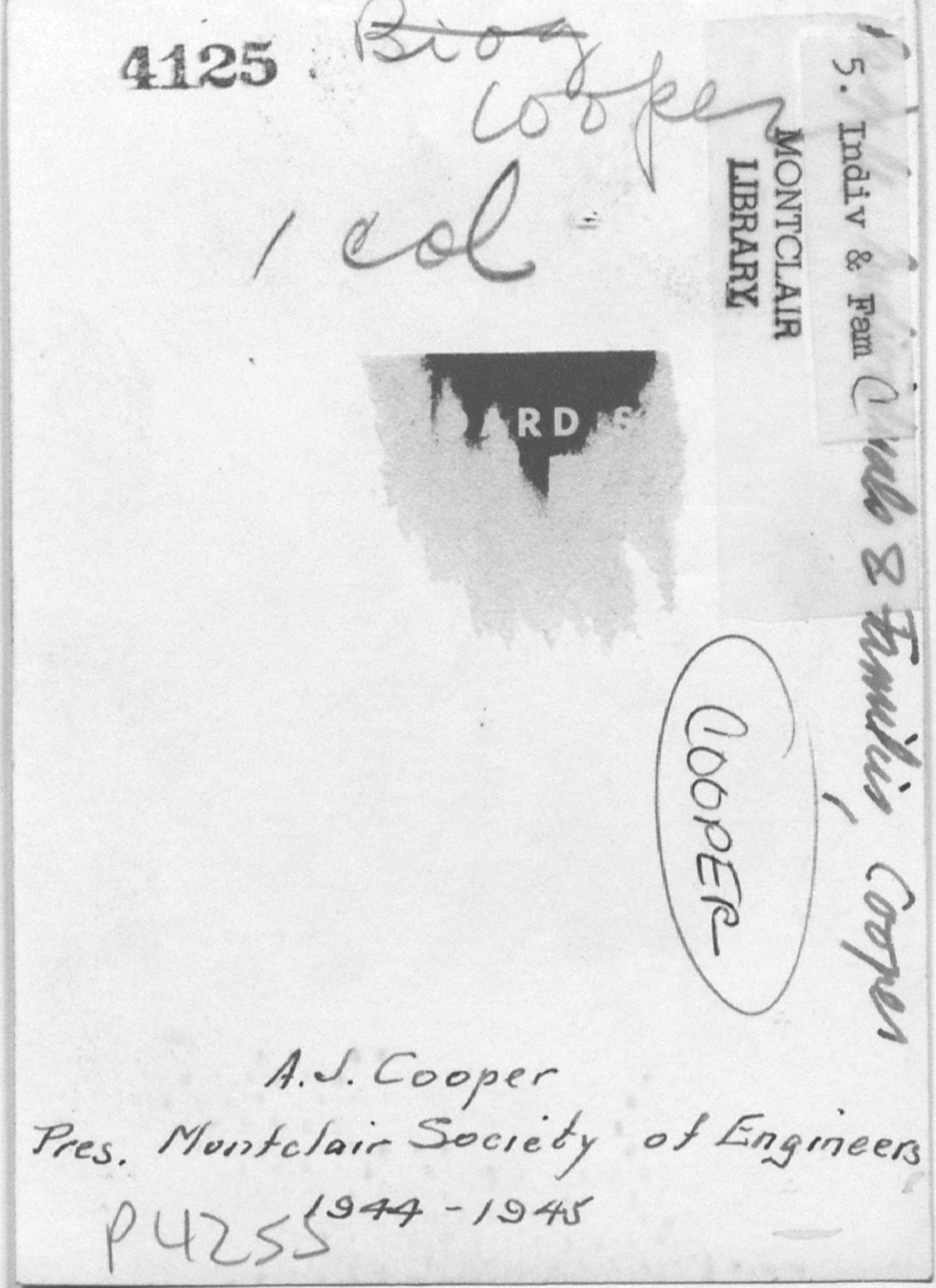 p4255 People portrait A. J. Cooper Presidents Montclair Society of Engineers