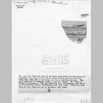 p4470 People Notable portrait Mrs. & Mr. Wilfred J. Funk Presidents Funk & Wagnalls Company and Wilfred Funk Inc Owners and Editors Literary Digest Magazine First Presidents Montclair Community Chest Authors Photo by Grace Line