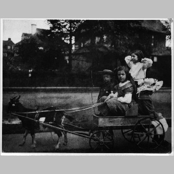 p4508 People Children group portrait Percival T. Gates Transportation Goat Drawn
