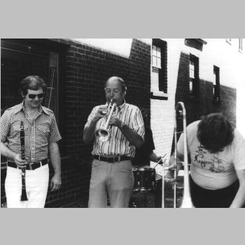 p5918 Events Music Dixieland Band Watchung Plaza People group portrait 1978 Photo by Ron Murphy