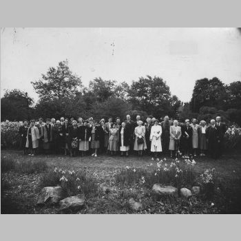 p6045 Landscapes Gardens Presby Memorial Iris Gardens Landscapes Parks Mountainside Park Upper Montclair People group portrait New Jersey Iris Society June 1949 Photo by E. L. Harvey