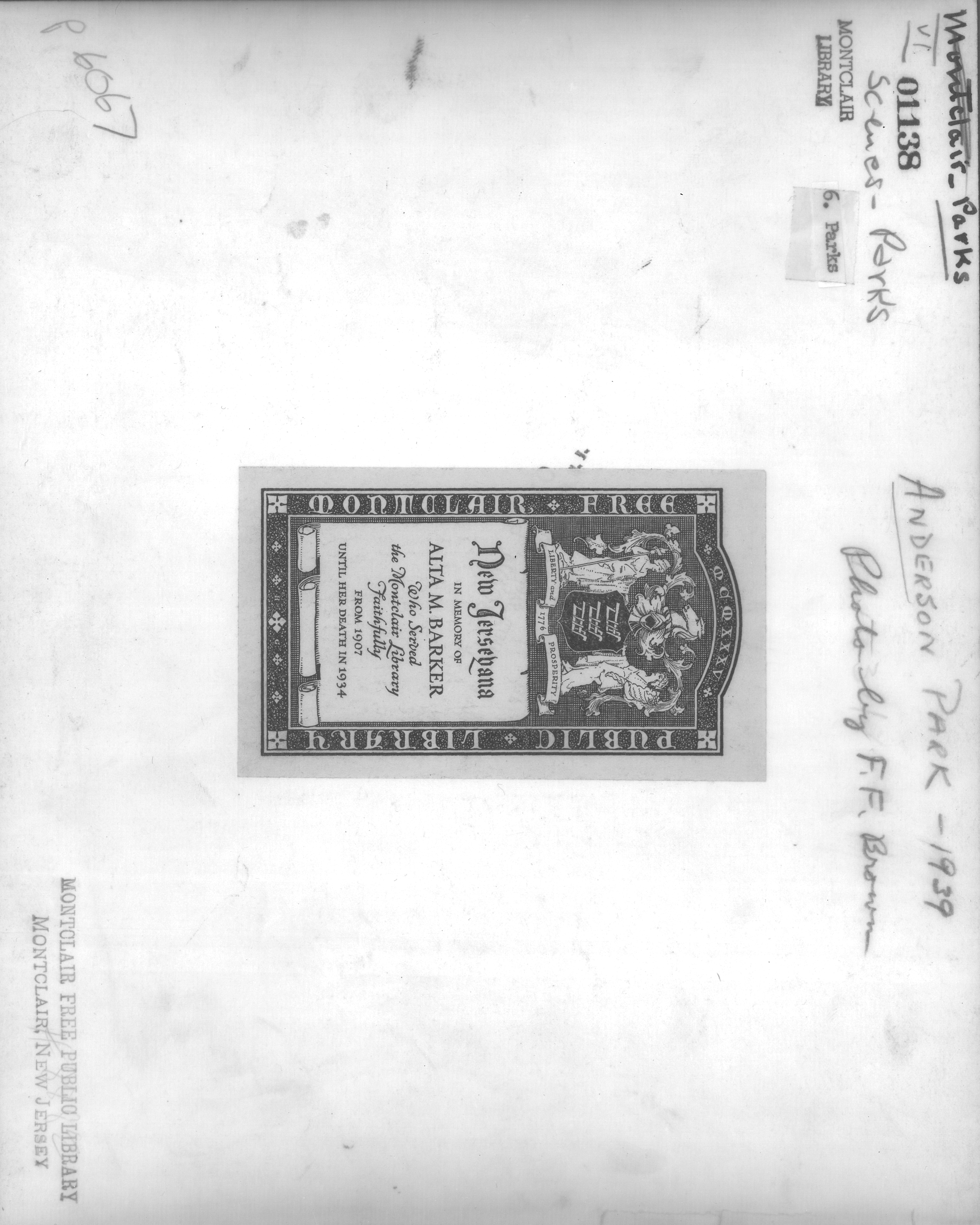 p6067 Landscapes Parks Anderson Park Upper Montclair 1939 Photo by Frank F. Brown