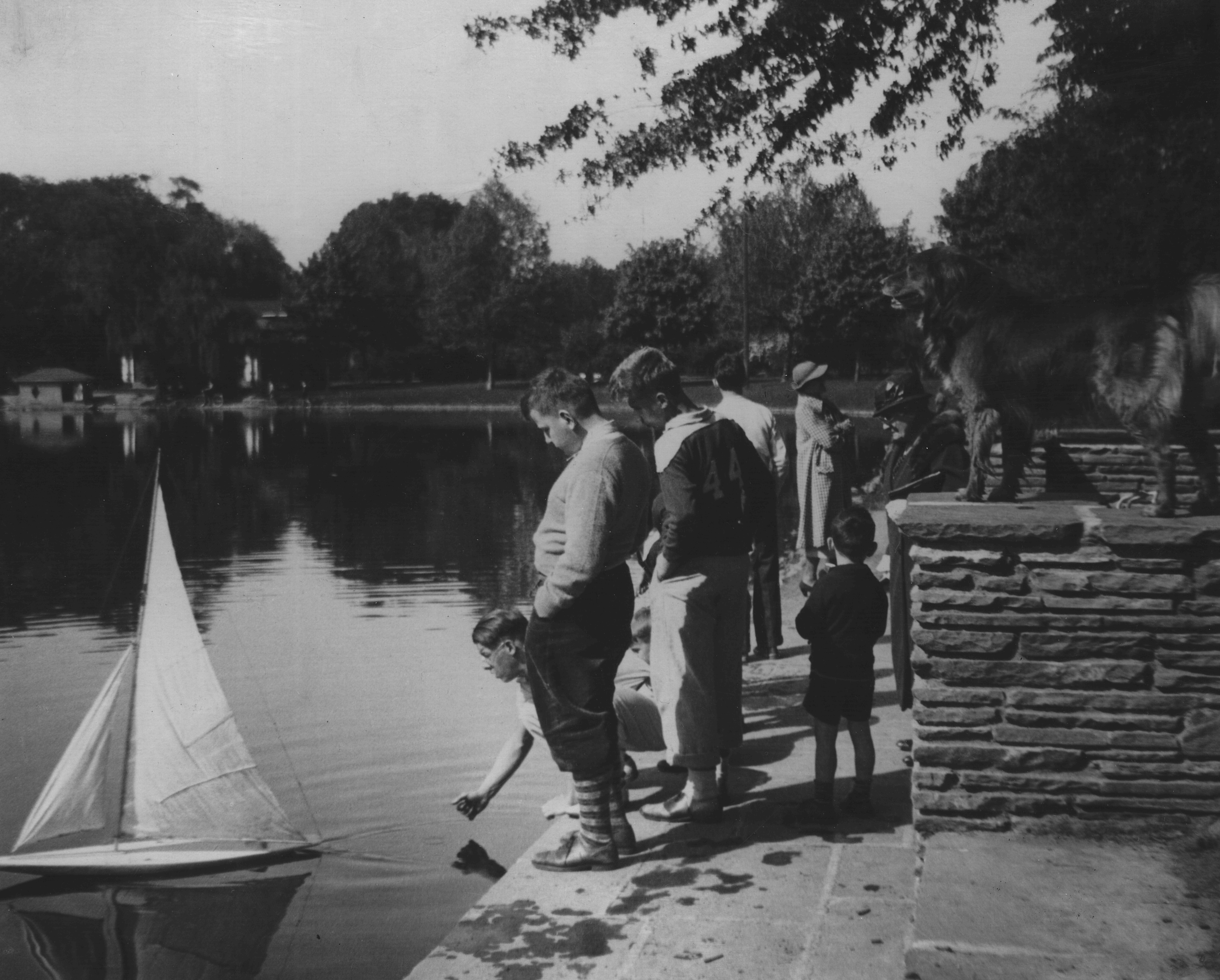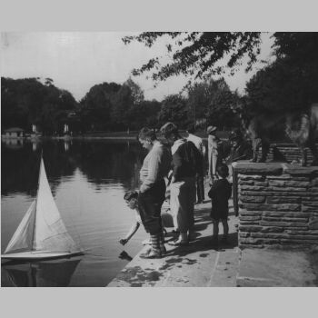 p6084 Landscapes Parks Edgemont Park ca. 1940 People group portrait Toys Sailboats