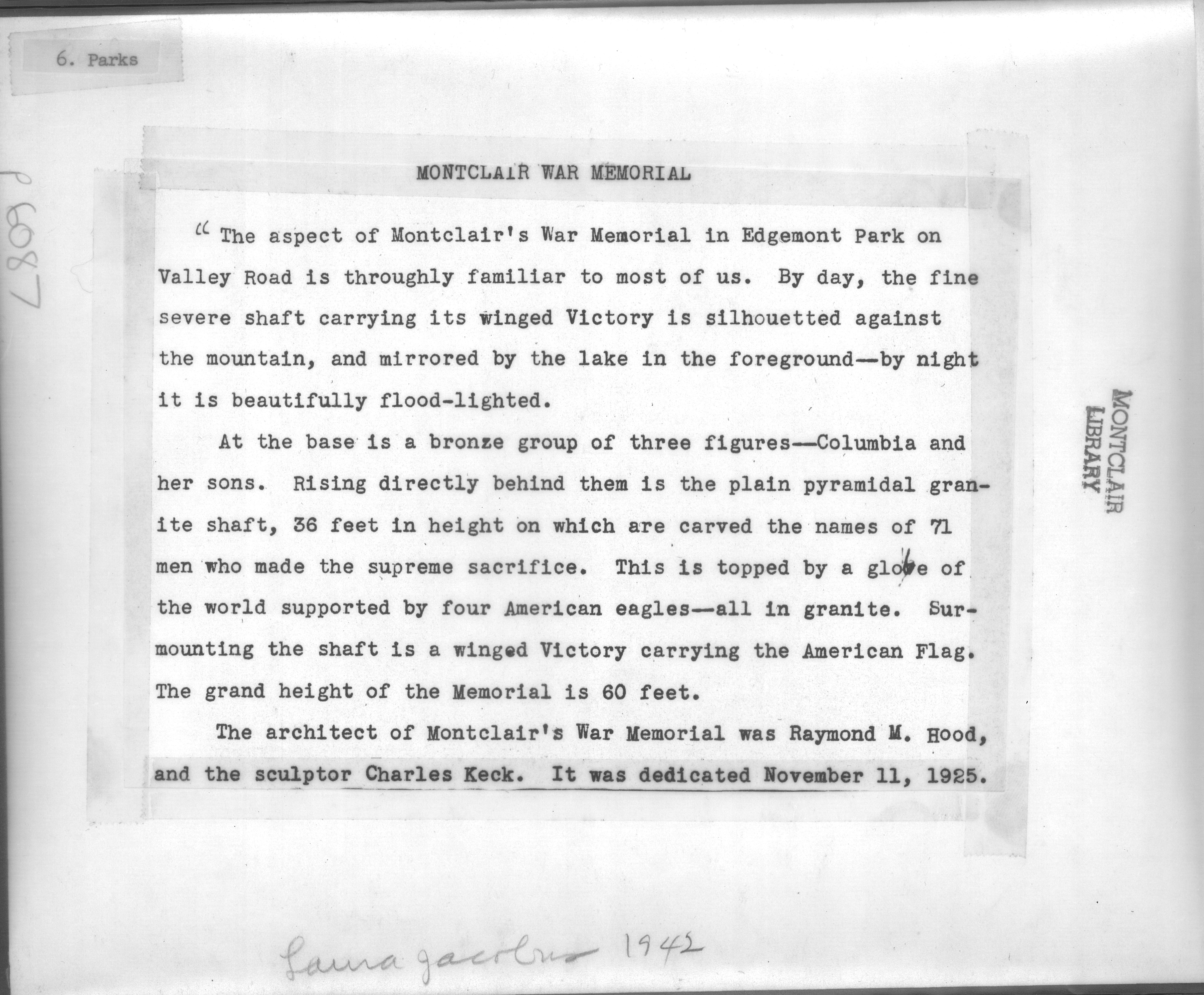 p6087 Landscapes Parks Edgemont Park Events Military World War I War Memorial 1942 Photo by Laura Jacobus