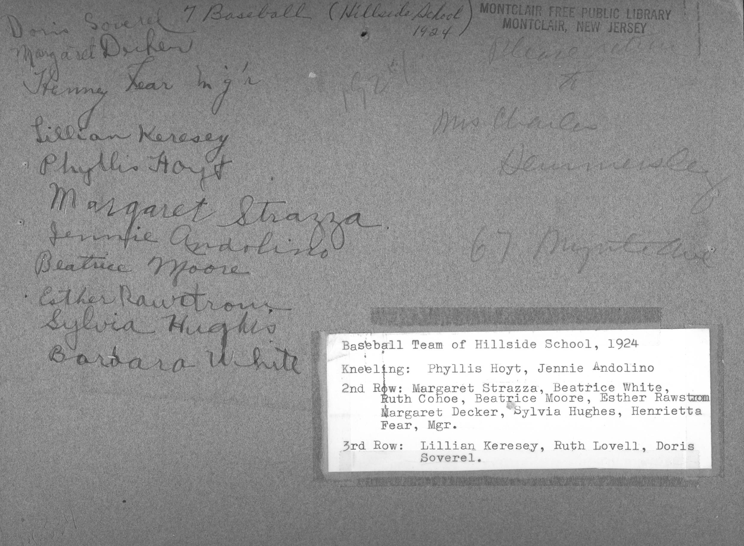 p6534 Sports Baseball Schools Public Secondary Hillside School People Children group portrait 1924