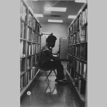 p7115 Buildings & Institutions Libraries Montclair Public Library Fourth Building 50 South Fullerton Avenue Interiors Libraries People portrait Pagers ca. 1976-1977