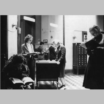 p7196 Buildings & Institutions Libraries Montclair Public Library Third Building Church Street Interiors Libraries People group portrait Library Patrons Photo by Junior High Students Photo Contest