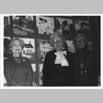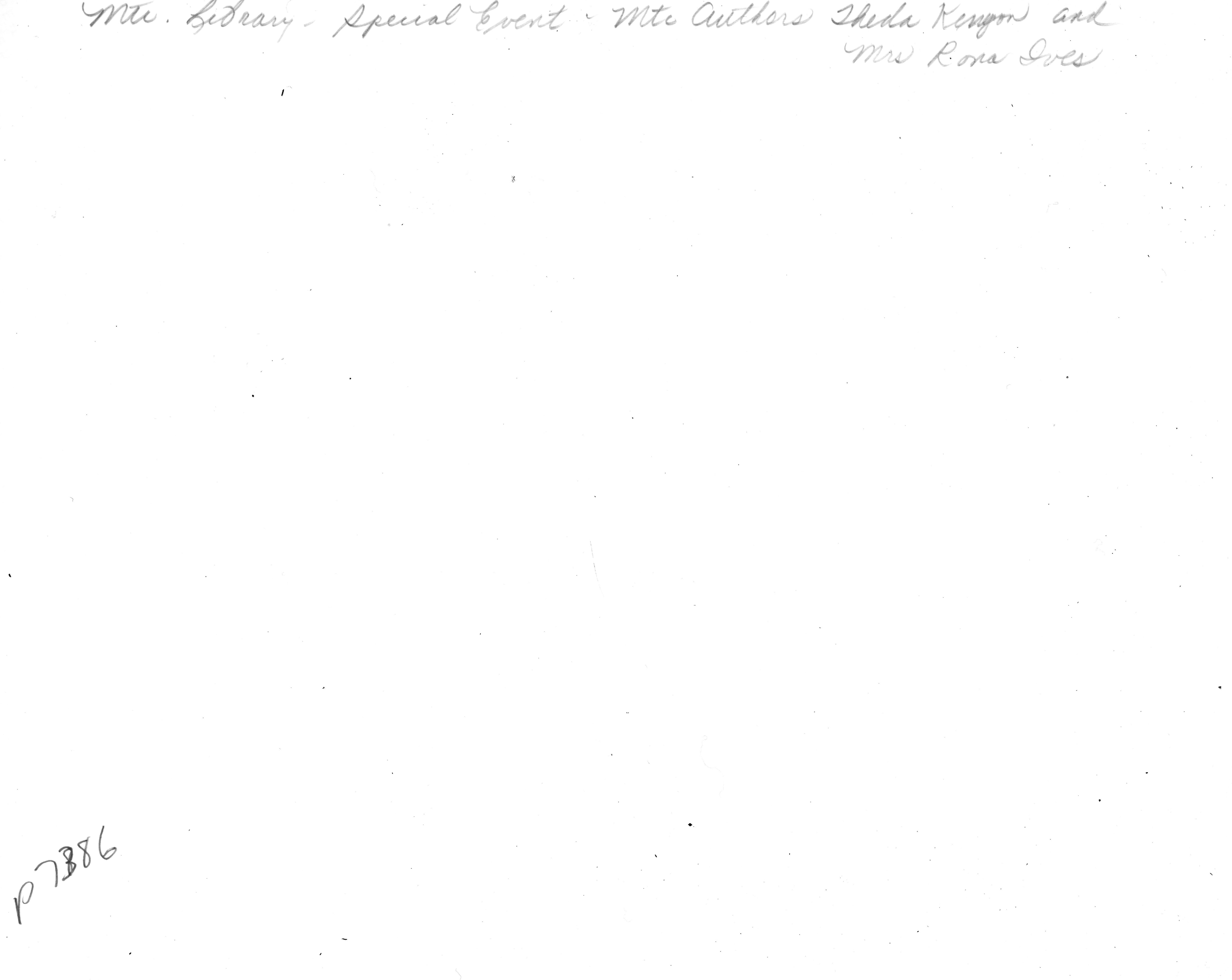 p7386 Buildings & Institutions Libraries Montclair Public Library Fourth Building 50 South Fullerton Avenue Interiors Libraries Events Library Montclair Authors Program People group portrait Theda Kenyon Mrs. Rona Ives ca. 1980