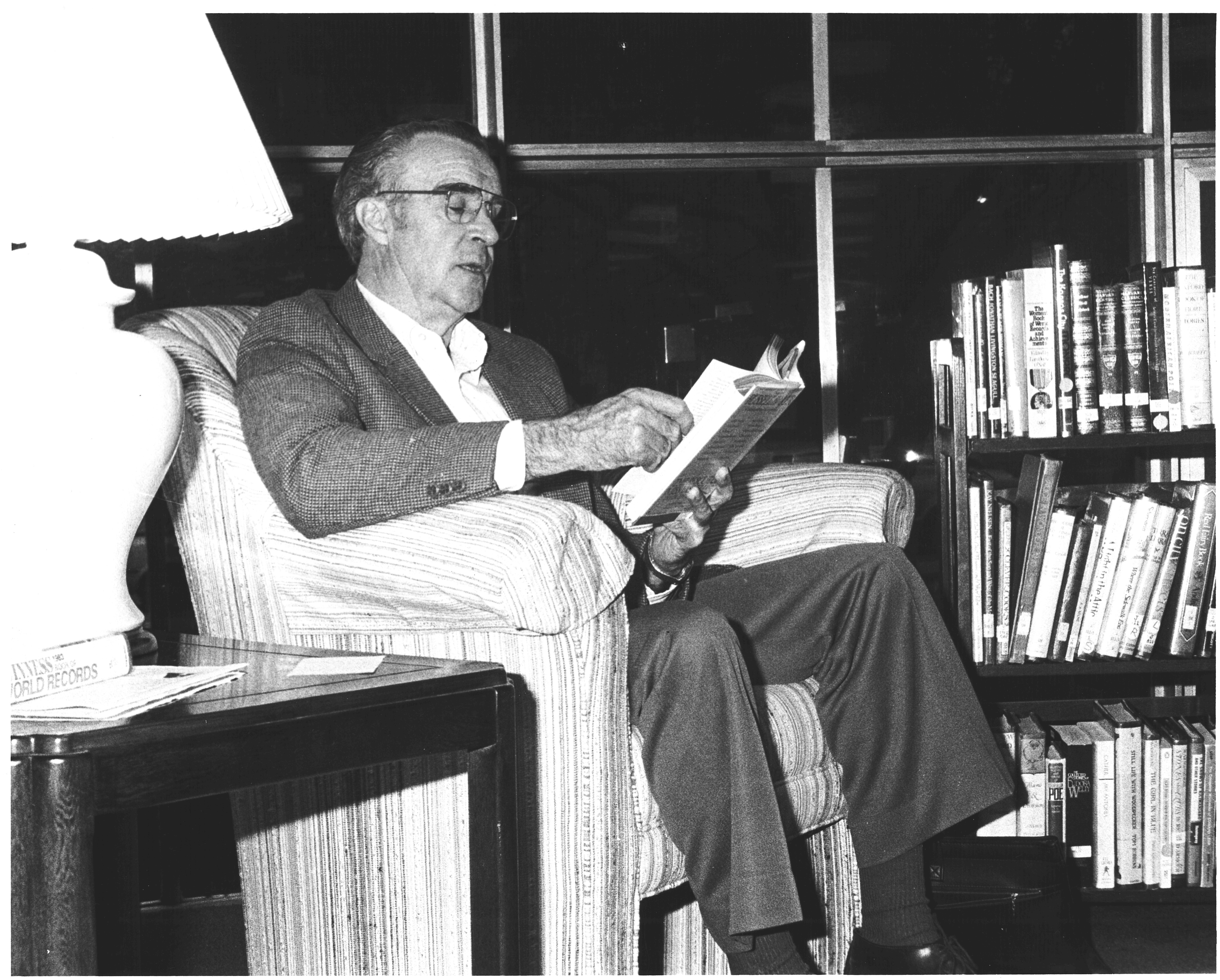 p7466 Buildings & Institutions Libraries Montclair Public Library Fourth Building 50 South Fullerton Avenue Interiors Libraries Events Library National Library Week Read-a-Thon People portrait Malcolm Blodgett April 1986 Photo by Ron Murphy