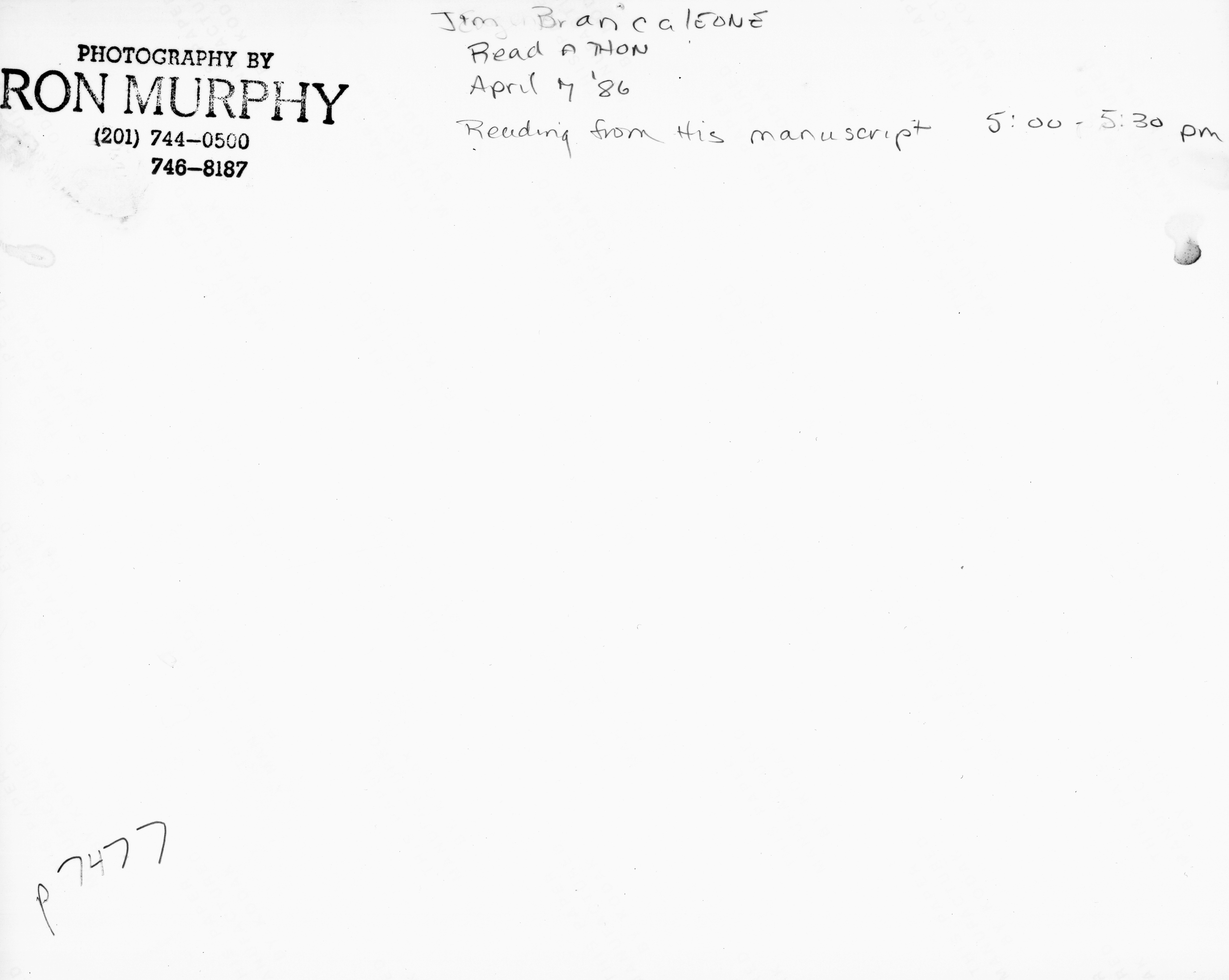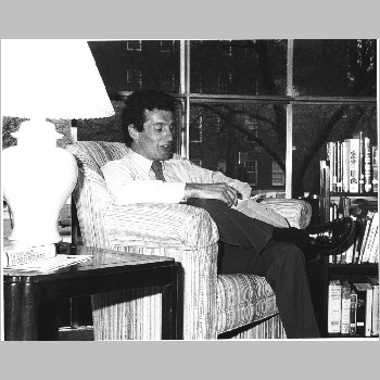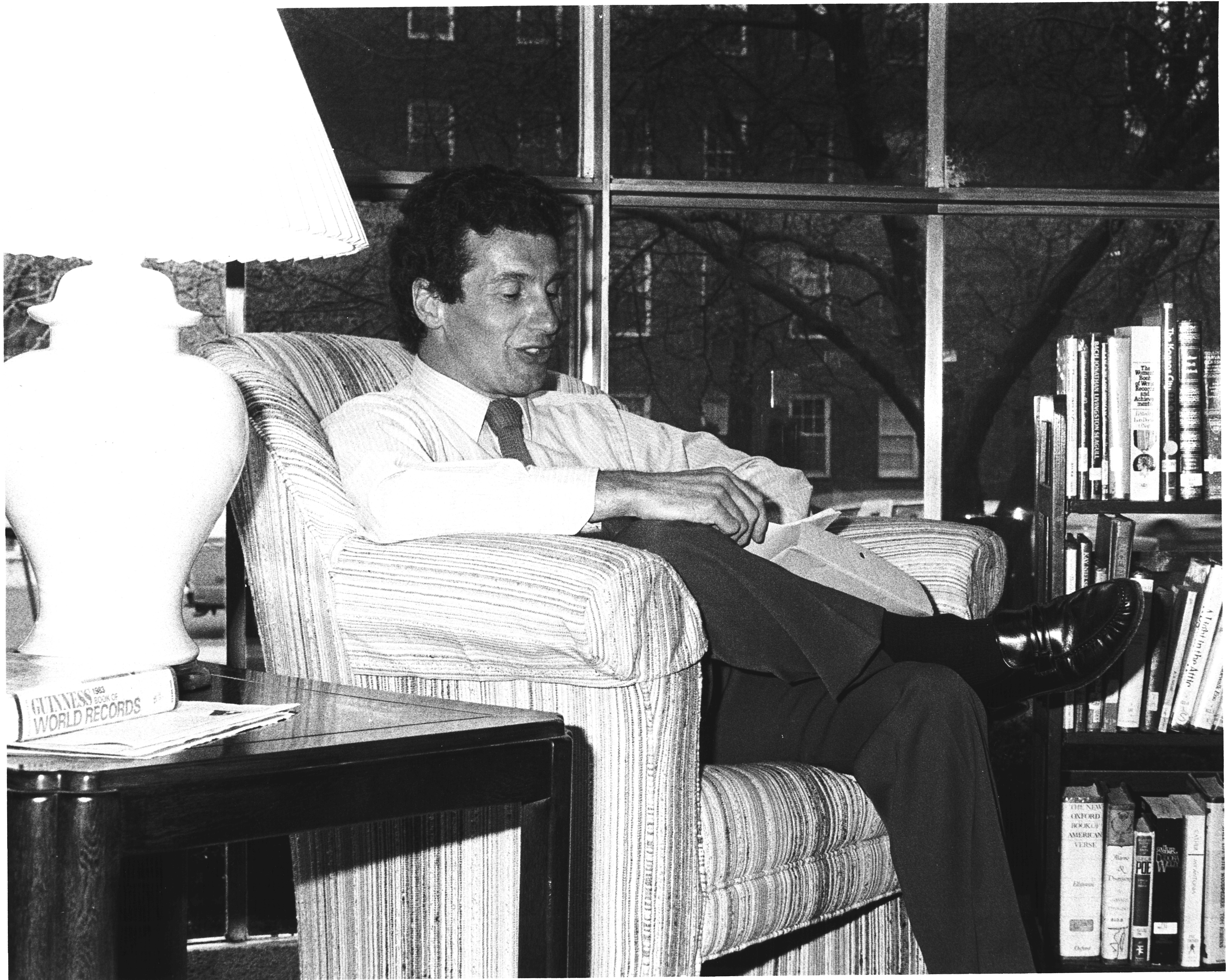 p7477 Buildings & Institutions Libraries Montclair Public Library Fourth Building 50 South Fullerton Avenue Interiors Libraries Events Library National Library Week Read-a-Thon People portrait Jim Brancaleone Authors April 1986 Photo by Ron Murphy
