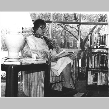 p7482 Buildings & Institutions Libraries Montclair Public Library Fourth Building 50 South Fullerton Avenue Interiors Libraries Events Library National Library Week Read-a-Thon People portrait Edith A. Rights April 1986 Photo by Ron Murphy