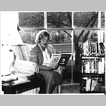 p7483 Buildings & Institutions Libraries Montclair Public Library Fourth Building 50 South Fullerton Avenue Interiors Libraries Events Library National Library Week Read-a-Thon People portrait Kathy Hanley April 1986 Photo by Ron Murphy
