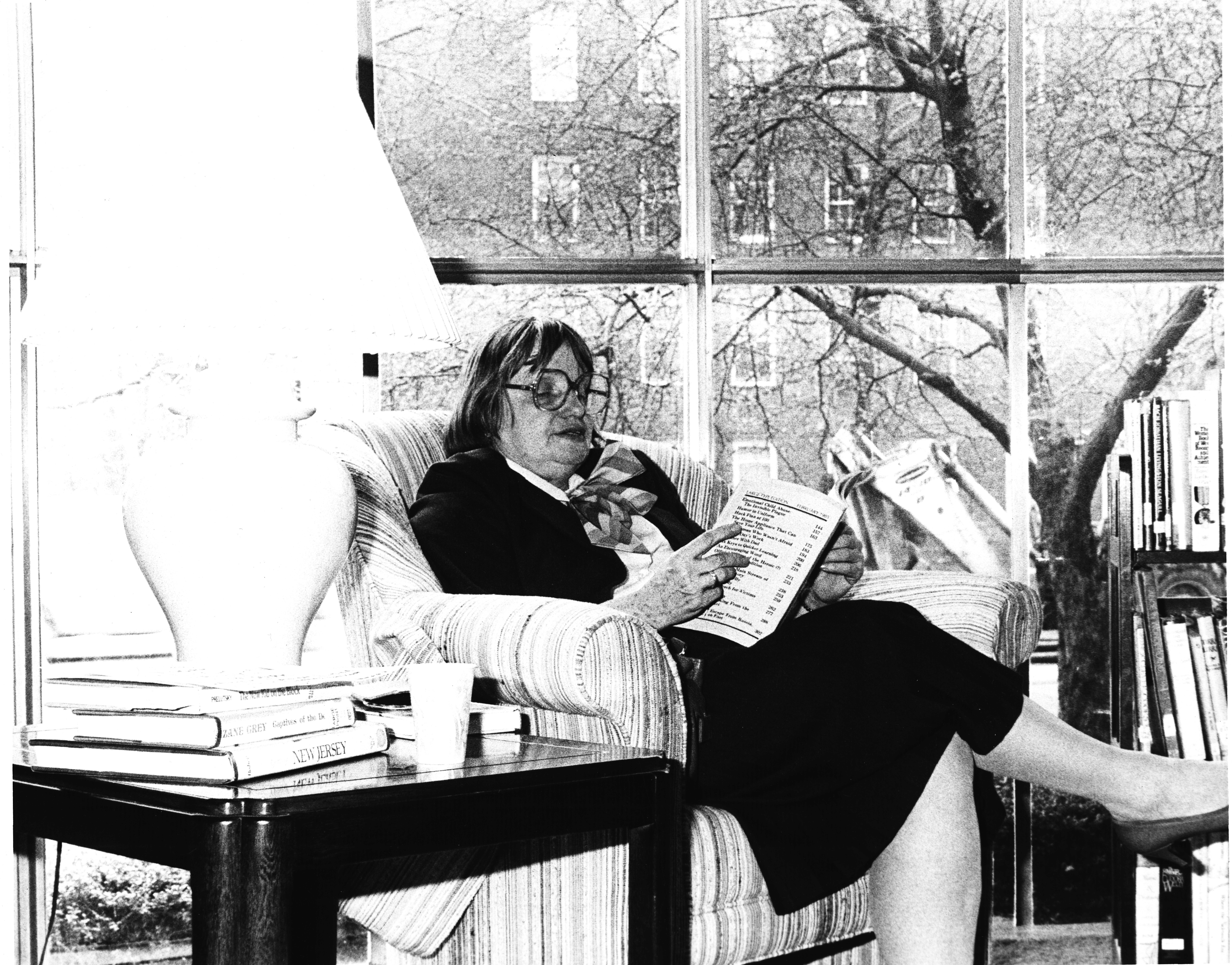 p7485 Buildings & Institutions Libraries Montclair Public Library Fourth Building 50 South Fullerton Avenue Interiors Libraries Events Library National Library Week Read-a-Thon People portrait Pat Kitson April 1986 Photo by Ron Murphy