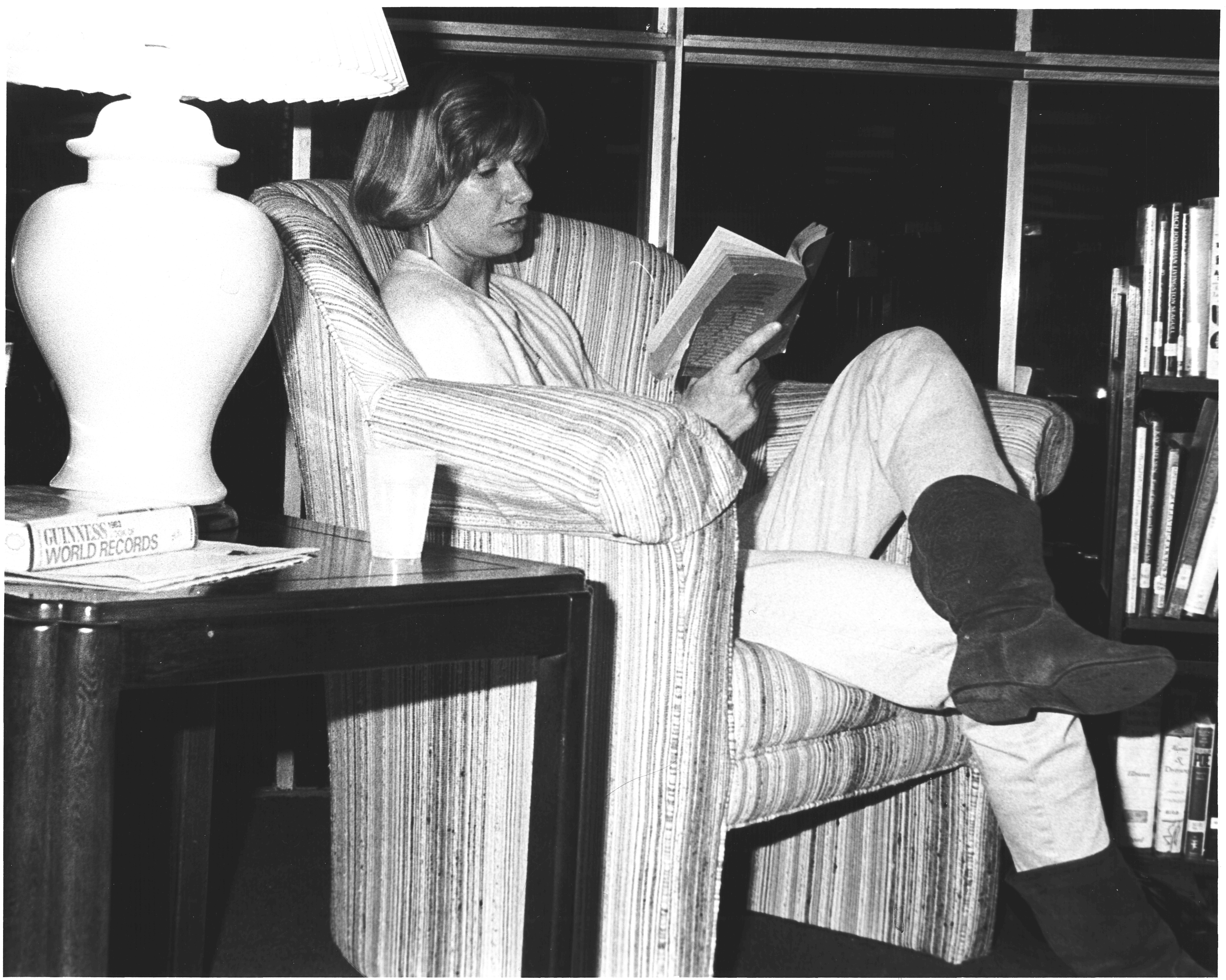 p7487 Buildings & Institutions Libraries Montclair Public Library Fourth Building 50 South Fullerton Avenue Interiors Libraries Events Library National Library Week Read-a-Thon People portrait Liz Davies April 1986 Photo by Ron Murphy