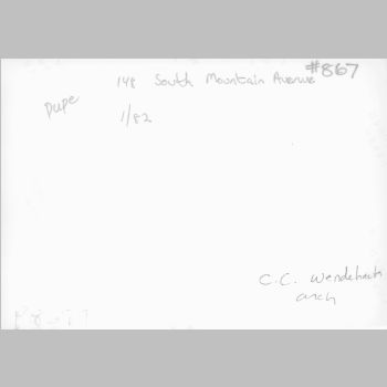 p8689 Buildings & Institutions Residences Street Scenes 148 South Mountain Avenue C. C. Wendehack Architects (Historic Survey) January 1982