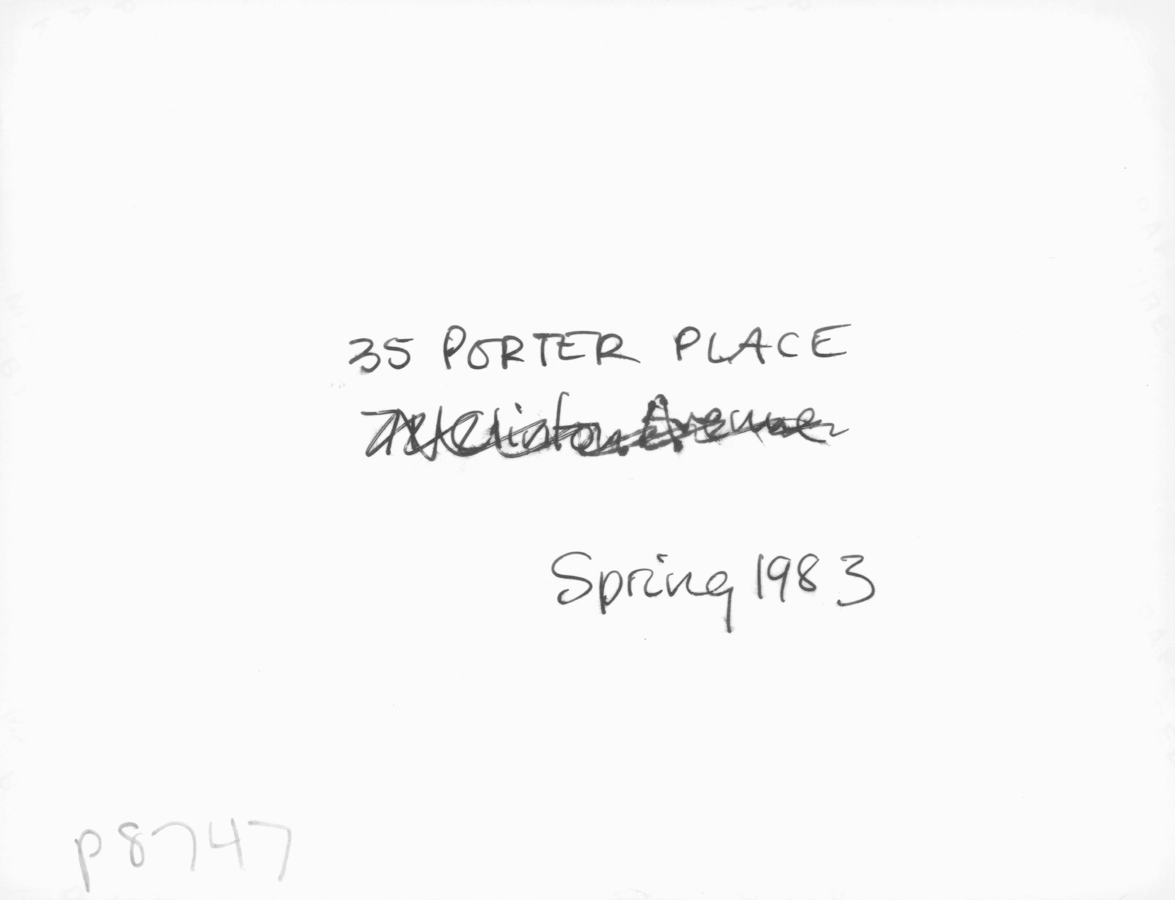 p8747 Buildings & Institutions Residences Street Scenes 35 Porter Place (Historic Survey) Spring 1983