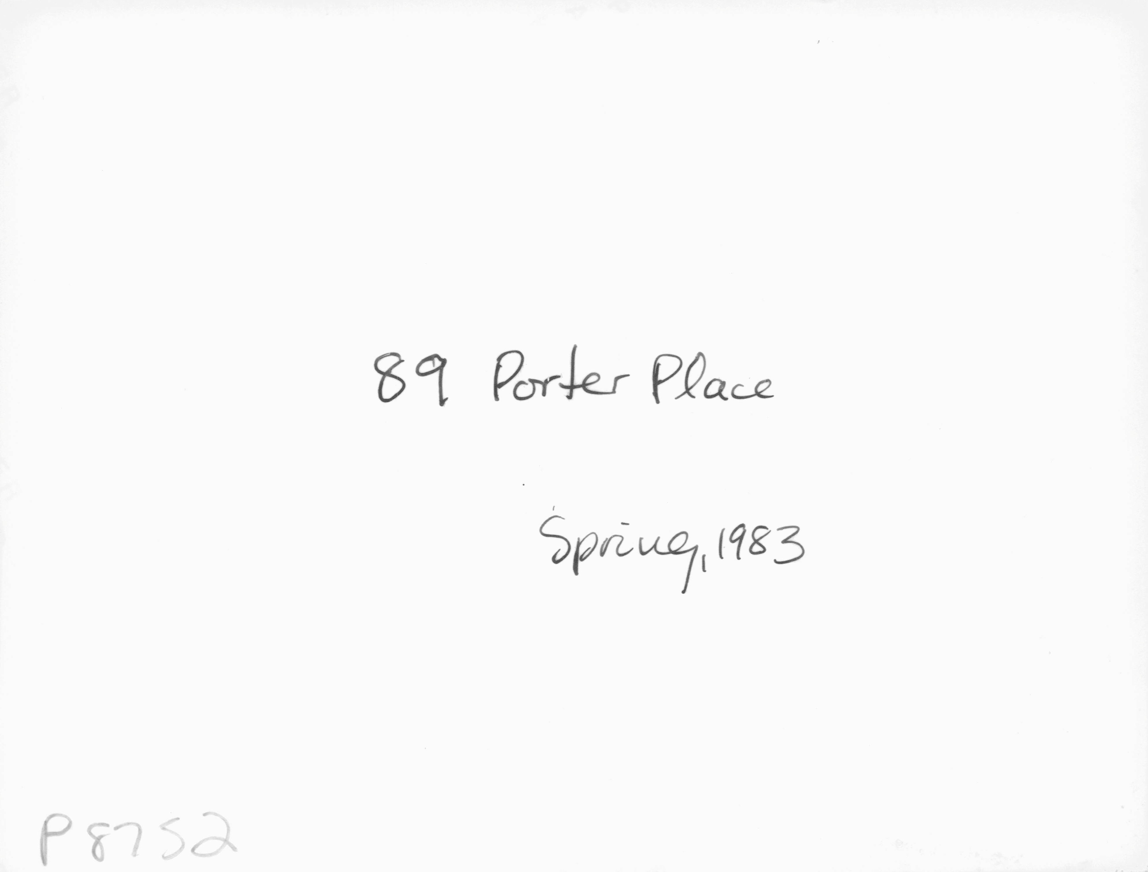 p8752 Buildings & Institutions Residences Street Scenes 89 Porter Place (Historic Survey) Spring 1983