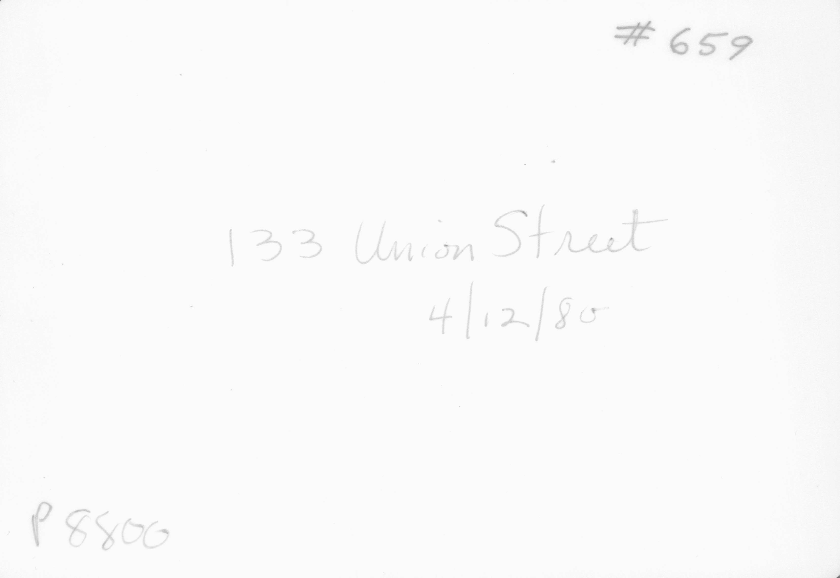 p8800 Buildings & Institutions Residences Street Scenes 133 Union Street (Historic Survey) April 1980